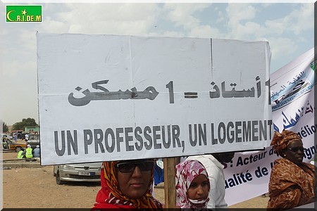 Autre annonce faite par la secrétaire générale de l’UTM, découlant aussi d’un engagement de Seydina Ali Ould Mohamed Khouna : l’application des statuts professionnels de l’enseignement à partir de juillet 2016 et la mise en place d’une commission technique entre les différentes parties prenantes en vue de l’étude du coût financier inhérent aux statuts de l’enseignement fondamental.