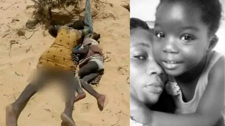 Un ami lui montre ensuite sur Internet un terrible cliché de sa femme ivoirienne et de sa fille, dont il a été séparé lors d’un périple à travers le désert entre Tunisie et Libye, leurs corps gisant dans le sable, blotties l’une contre l’autre, comme vous pouvez le voir sur la photographie ci-dessous. C’était le 19 juillet.