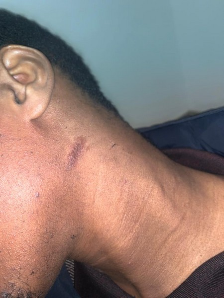 Des policiers, qui semblaient avoir comme unique cible ma personne, m'ont attaqué sans raison apparente et, après m'avoir frappé avec une extrême violence au visage, ainsi qu'au ventre, ont fini par s'enfuir et disparaître m'abandonnant dans une situation extrêmement malheureuse à l'hôpital de l'Amitié.